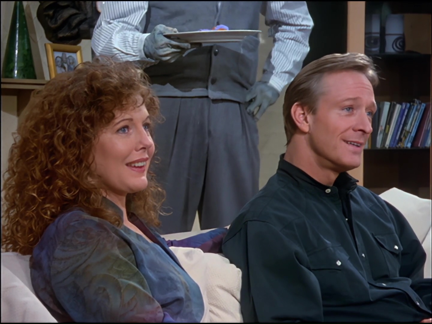 Sally and Patrick Brogan drop by because they’re such swell friends of the family now. And Sally knows that there’s only one gift that Estes would actually give two hoots about…