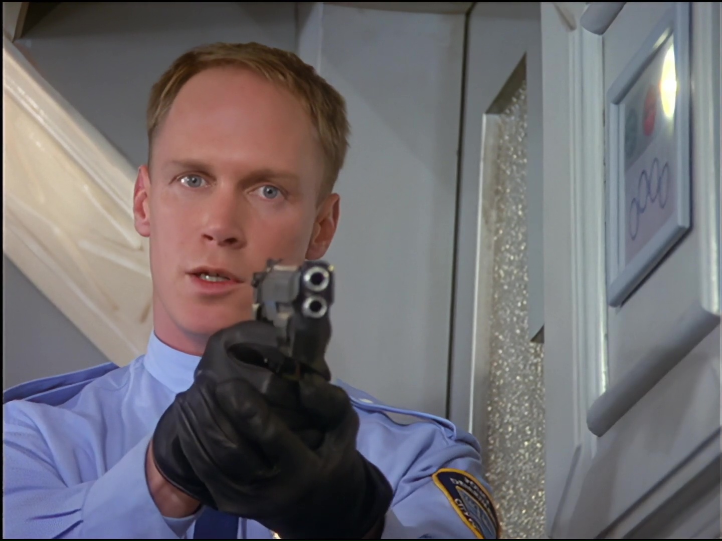 Fredo’s back at work but the normally cool and collected desk sergeant is babbling about his daughter’s safety and wants a favour. Something’s off with actor David Quilter’s mask in this scene as he struggles to get Fredo’s mouth open when he talks.