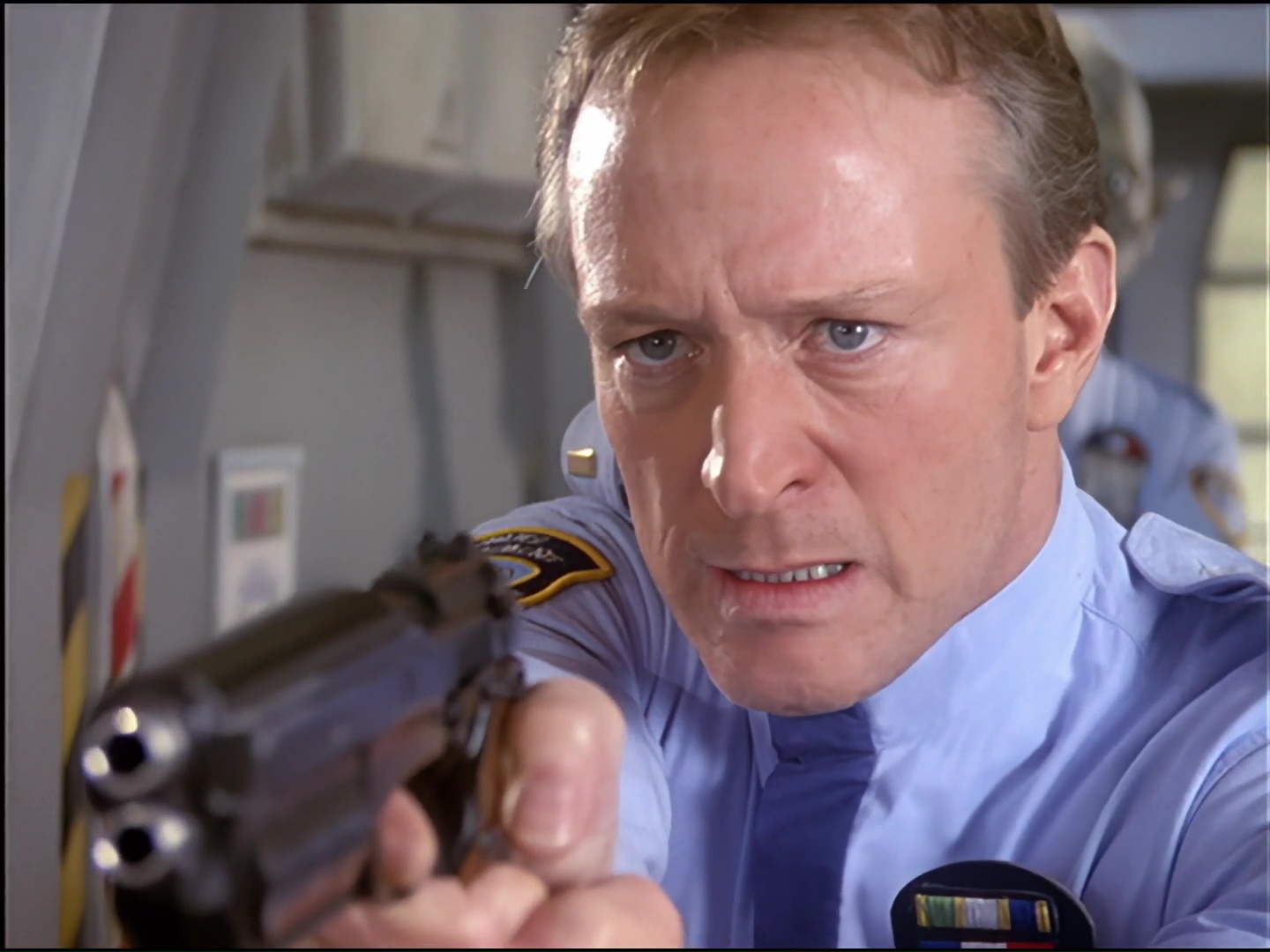 I guess by seating the new guy alongside Romek – a trusted member of the regular team – we should infer that the new guy is trustworthy too. But it’s Space Precinct so we know that probably isn’t the case because they almost always turn out to be the baddie. The new guy in question is Officer Morgan, played by American actor, Todd Boyce. His television career started with a long run of appearances on the Australian soap opera, The Restless Years starting in 1980. After Space Precinct, he returned to the world of soaps as Stephen Reid in Coronation Street… a character who also turned out to be a complete psychopath.